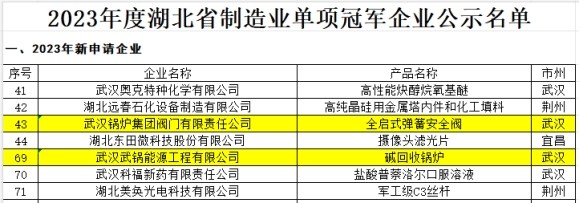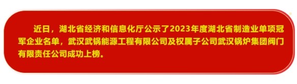 武鍋能源公司及權(quán)屬子公司武鍋閥門公司雙雙獲評(píng)2023年度湖北省制造業(yè)單項(xiàng)冠軍